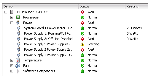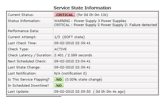WARNING : Power Supply 3 Power Supplies<br>CRITICAL : Power Supply 2 Power Supply 2: Failure detected<br>